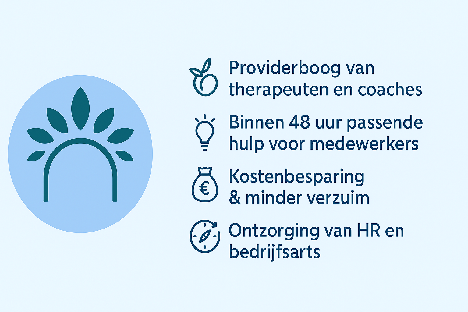 Met onze providerboog van deskundige en gecertificeerde professionals, therapeuten, coaches en leefstijlprofessionals zorgen wij dat medewerkers direct passende hulp krijgen.